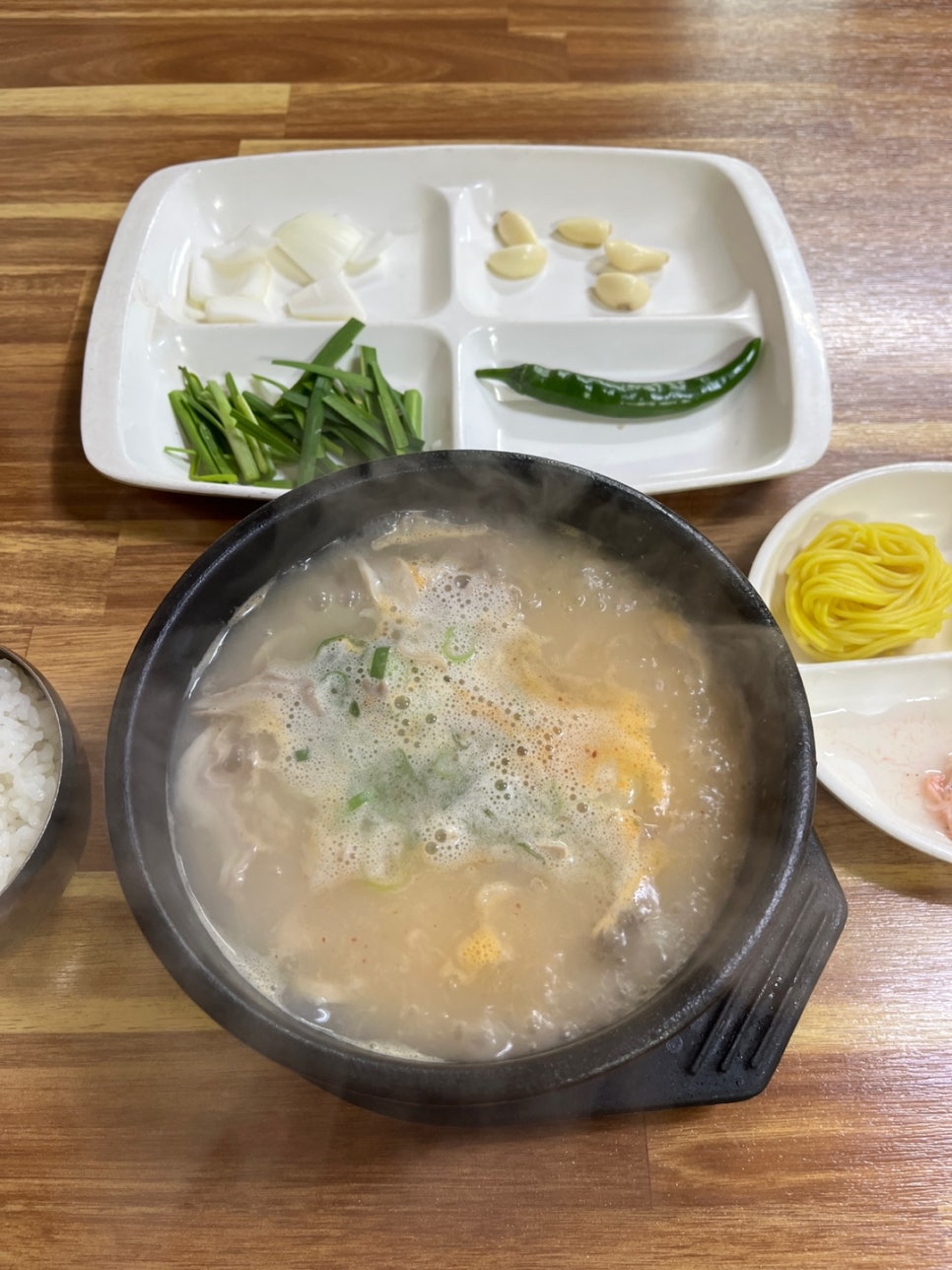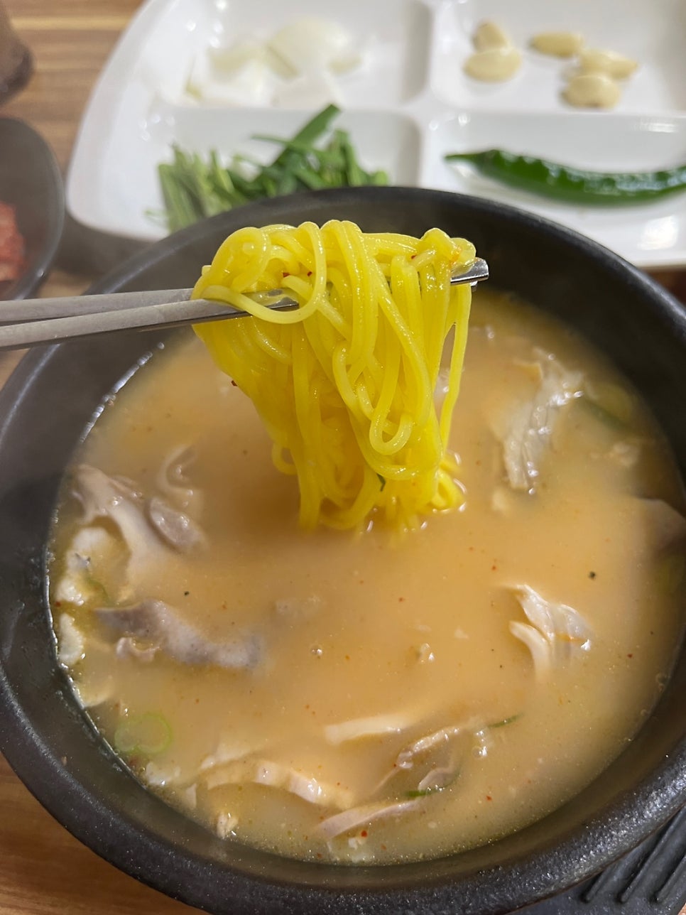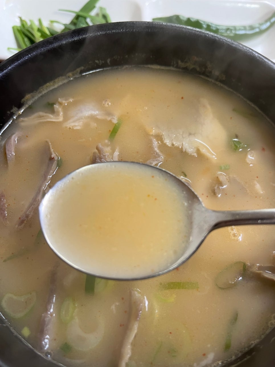 어깨 솟은 놈이 도착했습니다. 국물이 일단 뽀얗습니다
