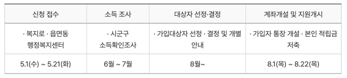 청년내일저축계좌 가입 일정