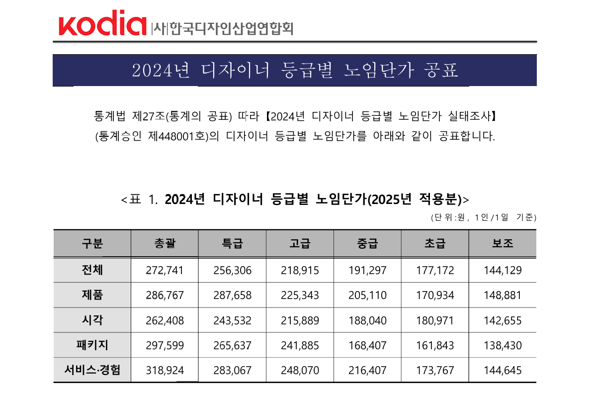 2025년에 적용되는 디자이너 인건비(디자인 노임단가)가 업데이트 되었습니다