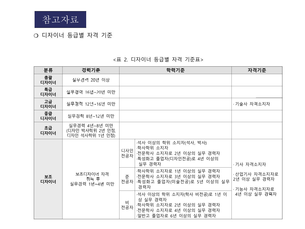 디자이너 등급별 노임단가/자격 기준표 PDF 파일도 받아 보실 수 있게 링크도 공유 해둘게요~!
